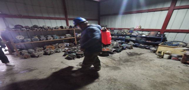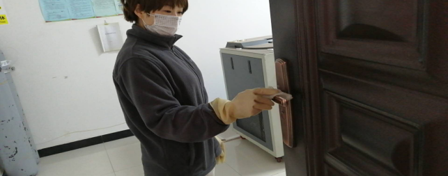 在園區(qū)南門,今日截止下午17時整,他們檢測、消毒、登記車輛100輛,人員126人,車輛正常,人員體溫均在正常范圍。