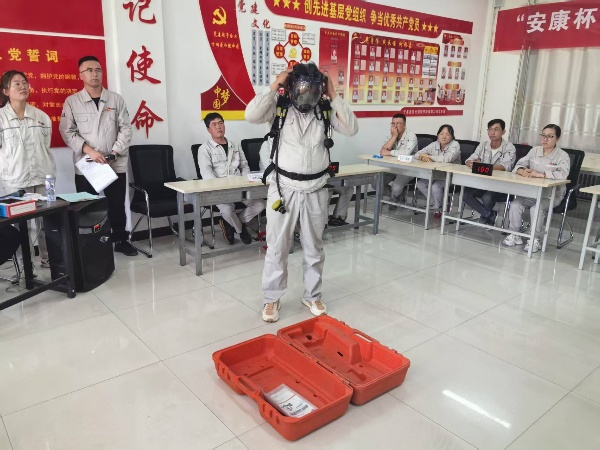 比賽現(xiàn)場,參賽隊(duì)員們個(gè)個(gè)精神抖擻、斗志昂揚(yáng)�!靶姆螐�(fù)蘇操作”“正壓式空氣呼吸器穿戴”兩個(gè)項(xiàng)目,選手們爭分奪秒?yún)s有條不紊:檢查患者意識和呼吸、檢查氣瓶壓力、調(diào)整背帶松緊、佩戴面罩并測試氣密性……一套流程行云流水,展現(xiàn)出扎實(shí)的技能功底與高度的安全意識�;顒蝇F(xiàn)場,公司安全總監(jiān)鐵旭東、安全主管何寧、海什全程監(jiān)督評分,并針對操作細(xì)節(jié)進(jìn)行實(shí)時(shí)監(jiān)控,將比賽轉(zhuǎn)化為安全培訓(xùn)課堂,達(dá)到競賽和培訓(xùn)相結(jié)合。參賽職工紛紛表示,通過比武不僅提升了應(yīng)急處置能力,更深刻體會到規(guī)范操作的重要性。