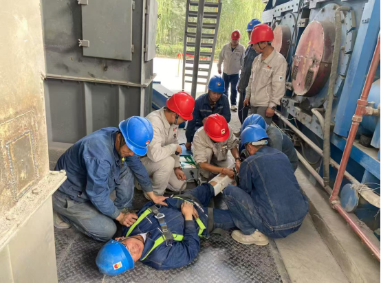 結(jié)合各生產(chǎn)崗位實際,化整為零組織開展了“高處墜落”“預(yù)熱器物料灼燙”“高壓開關(guān)柜著火”“鹽酸灼燙”“夏季高溫中暑”事故應(yīng)急救援演練,通過模擬實戰(zhàn)場景,提升全員快速反應(yīng)能力,強(qiáng)化應(yīng)急處置水平。
