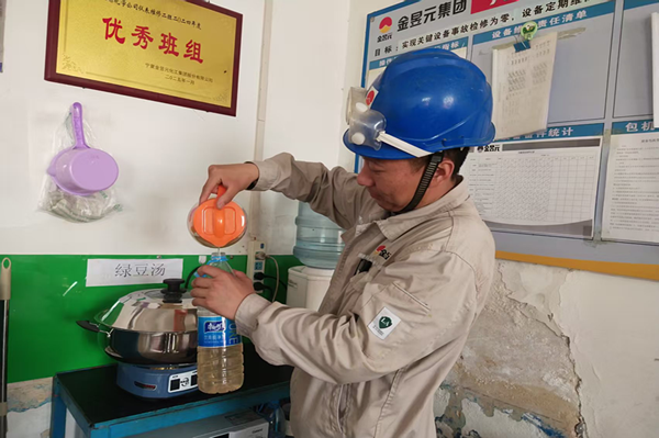 盛夏時節(jié),驕陽似火,能源化學公司廠區(qū)內(nèi)熱浪滾滾。面對持續(xù)的高溫“烤”驗,為保障一線維修人員的身體健康,能源化學公司迅速行動,將熬煮綠豆湯和茶水作為關懷員工的“清涼實事”,為堅守崗位的維修人員送去陣陣沁人心脾的涼意。