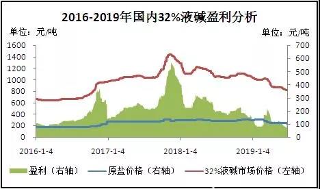 圖3 2016-2019年國內(nèi)32%液堿盈利分析